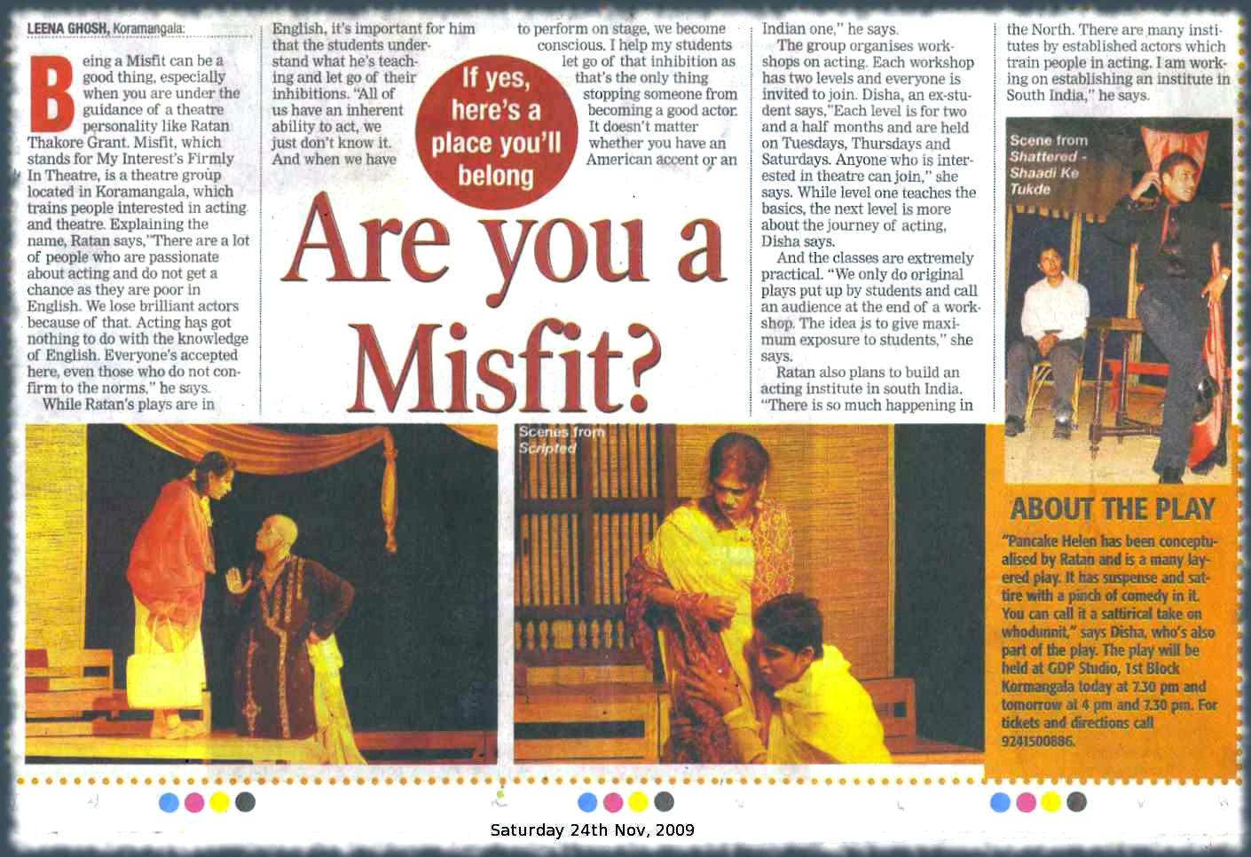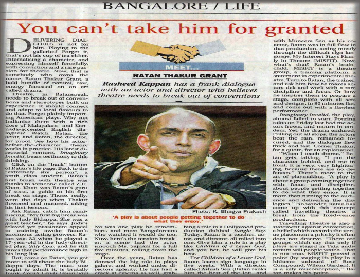 Times of India’s “Bangalore for Women” campaign organizes a theatre workshop conducted by Ratan Thakore Grant/MISF!T®. Details available here. Link to the complete article on the Times of India website is available here.